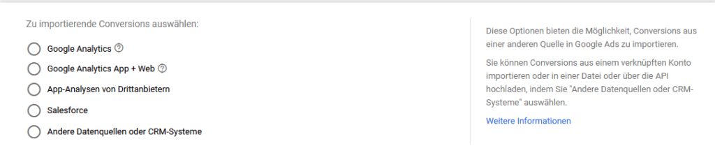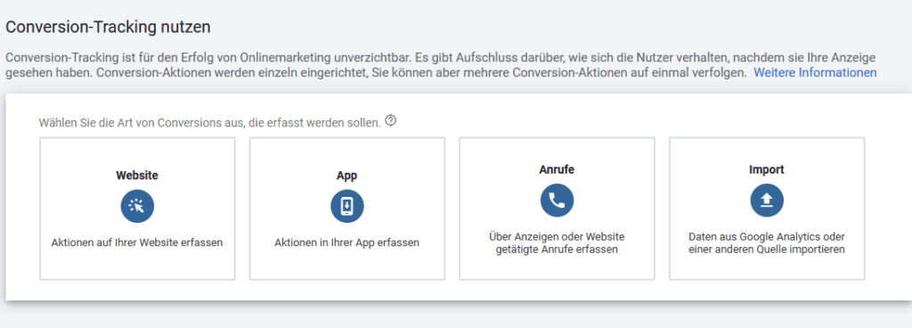 Tracking-Zeitraum für View-throught-Anzeigen: Diese Einstellungen ist später vor allem dann relevant, wenn es darum geht, Werbeanzeigen im Displaynetzwerk zu tracken. Der angegebene Wert gibt vor, wann die Aufzeichnung einer Conversion erfolgen soll. Der Standardwert beträgt „1 Tag“ und sollte nicht geändert werden.